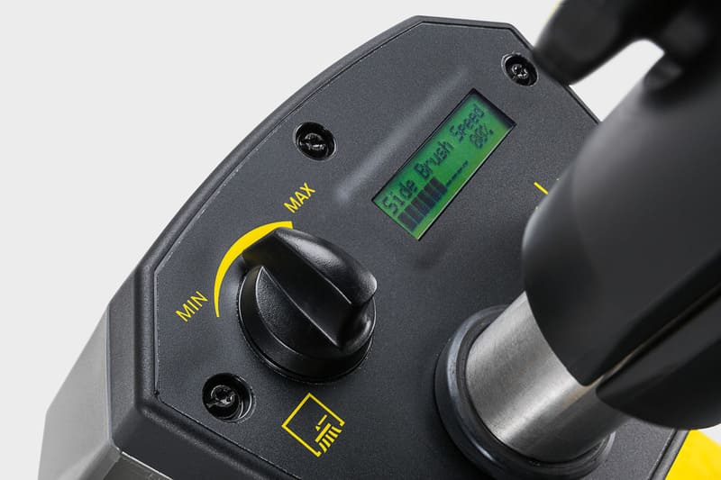 Roller brush and side brushes can be conveniently switched on and off via a foot pedal.