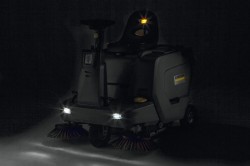 The KM 85/50 R, our battery powered ride-on sweeper, is perfect for confined and congested areas. Its compact design and high level of manoeuvrability mean that cleaning work can be performed in any location where space is limited, corridors are narrow or there is a high number of corners. The fact that this entry-level model also boasts impressive area performance in outside areas is proof of its versatility and efficiency. The machine is also extremely easy to operate and maintain. Thus, for example, the large dust filter, which enables dust-free working, can be easily cleaned from the operating position. In addition, it is possible to access the components through a wide-opening cover and to change the floating main sweeper roller without tools. You can tell when it is time to change the roller on the wear indicator, which is easy to read from the outside. There is no need to make subsequent adjustments to the sweeping system – even sections of the floor that are uneven are always swept clean without any residue. The rotating side brush effectively prevents damage, while you can adjust its rotation speed where necessary. The integrated Home Base system also enables other cleaning utensils to be carried.