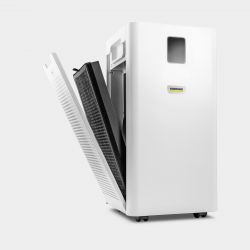 Perfect air purification for medium-sized rooms, living rooms and workplaces: the AF 30 air purifier rids indoor air of allergens, pollutants and pathogens by means of its multi-layer filter system. Other features include: the activated carbon fill, as well as a display to indicate the air quality in alphanumerical terms in PM2.5 particles in µg/m³, and to indicate the air quality with a colour code, the temperature and the relative humidity. The air purifier also makes an excellent choice on account of its timer function, child safety lock, night mode and ultra-silent operation, as well as a filter efficiency of 99.95% for 0.3 µm particles and a high-quality laser sensor for the automatic mode. This means that the automatic mode and the performance level adjust automatically to the level of air pollution. Moreover, the filter has a service life of around one year, depending on the level of air pollution and the intensity of use.